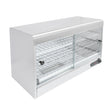 High quality unit with a holding capacity of up to 60 pies with up to 20 on each shelf. Easy-clean removable water reservoir prevents food drying out. Sliding rear doors and solid front.