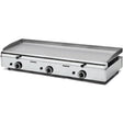 Ideal for use in schools, restaurants, pubs and takeaways, the Parry PGF1000G LPG griddle provides all the power and reliability you need for professional griddling applications. Boasting an almost meter-wide, 6mm steel plate, the griddle offers superb heat-up times and allows you to cook vast quantities of ingredients simultaneously. This means you can both significantly improve the speed of your cooking process and increase your product output to help you meet demand during peak periods. Fitted with three independently controlled burners, the griddle enables you to reduce your energy consumption during slower services, enhancing the efficiency of your operation. Made from sturdy stainless steel, the griddle is also robust enough to provide years of hassle-free and effortless cooking. An integrated drip tray also enables quick and simple cleaning, helping you maintain the premium quality of the unit.