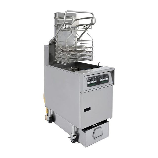 The Pitco Solstice natural gas rack fryer with SoloFilter SF-SG6H is a heavy duty powerhouse designed for high volume frying in busy kitchens. Capable of cooking up to 48 pieces of bone-in chicken or 60 chicken strips per hour, this fryer delivers consistent, high-quality results to keep up with every demanding service. Its innovative EZ-Lift rack system simplifies lifting food from the oil, reducing strain and improving efficiency during peak hours.