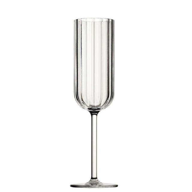 Crisp vertical optics and outstanding clarity make these Paradise flutes stand out. Made from virtually unbreakable polycarbonate, the flutes have all the style of crystal glass but none of the fragility. This makes them the ideal choice for bars and restaurants where safety and durability are paramount. These Paradise flutes are also glasswasher safe, allowing for quick and easy clean up after service.
