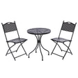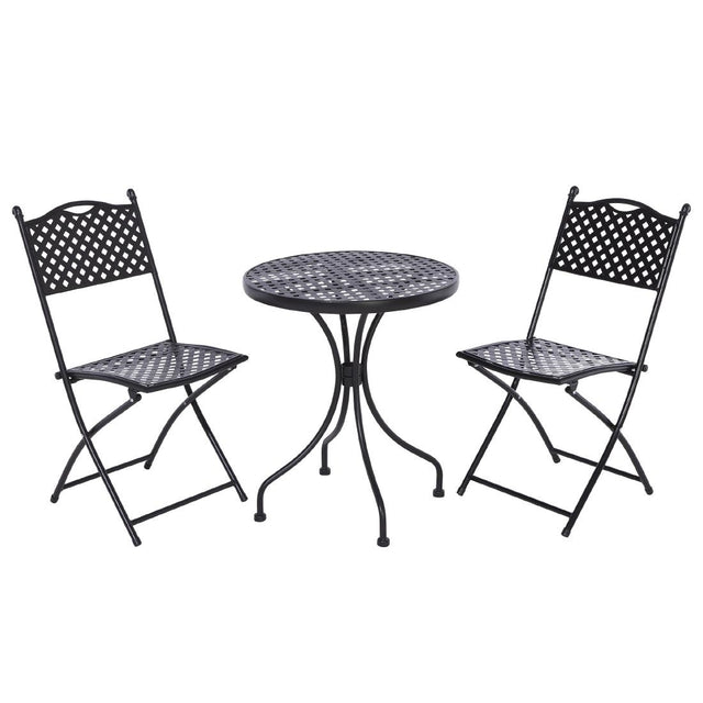 Rowlinson's Havana bistro set comes in a traditional lattice design. The set comprises a round table and two folding chairs and is the perfect size for patio and terrace spaces. Constructed from durable steel and powder-coated with a matte black finish, the set is designed for longevity without compromising on style and ease of use. For convenience, the chairs fold flat for neat and tidy storage and also make cleaning a breeze.