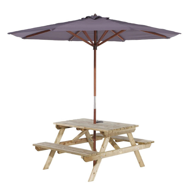 Rowlinson Picnic Table 6ft with Grey Parasol 2.7m