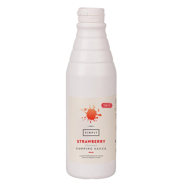 Enjoy the sweet taste and bright red colour of Simply's strawberry topping sauce. Packaged in a large 1kg squeezy bottle, this delicious berry flavour is a great alternative to a strawberry coulis for topping your desserts. Try the topping sauce on ice cream, frappes, milkshakes and more. Simply strawberry topping sauce is nut-free, gluten-free, suitable for halal, and carries the Vegetarian Society Vegan certification.