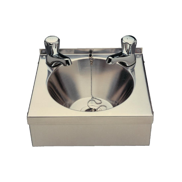 Mini stainless steel 304 wash basin supplied with plug, chain, apron support and waste (taps not included).