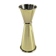 Elevate your bartending skills with the gold banded jigger by Beaumont. This bar essential ensures consistent shot measurements with its double-ended design, featuring precise internal markings. Pouring is a breeze, thanks to its wide opening. And, with an hourglass shape, you can flip the jigger easily - perfect if you like putting on a show whilst making cocktails.