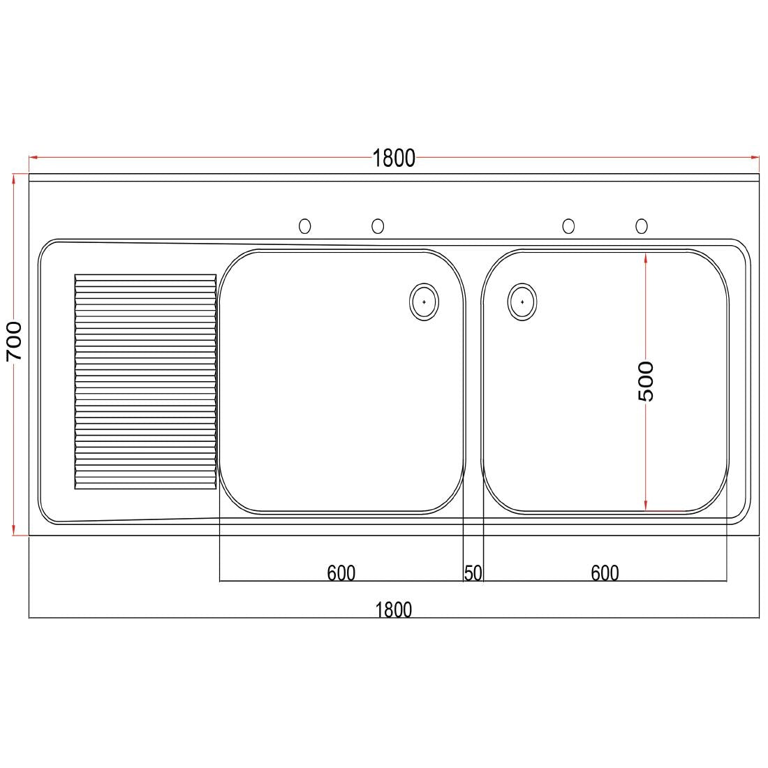 Speed up your kitchen's processes with a 1800mm double sink unit from Vogue. Each stainless steel unit is manufactured from industry-leading materials to give a hygienic, durable and well-built addition to any kitchen space. This makes it perfect for heavy-use, great for commercial environments.