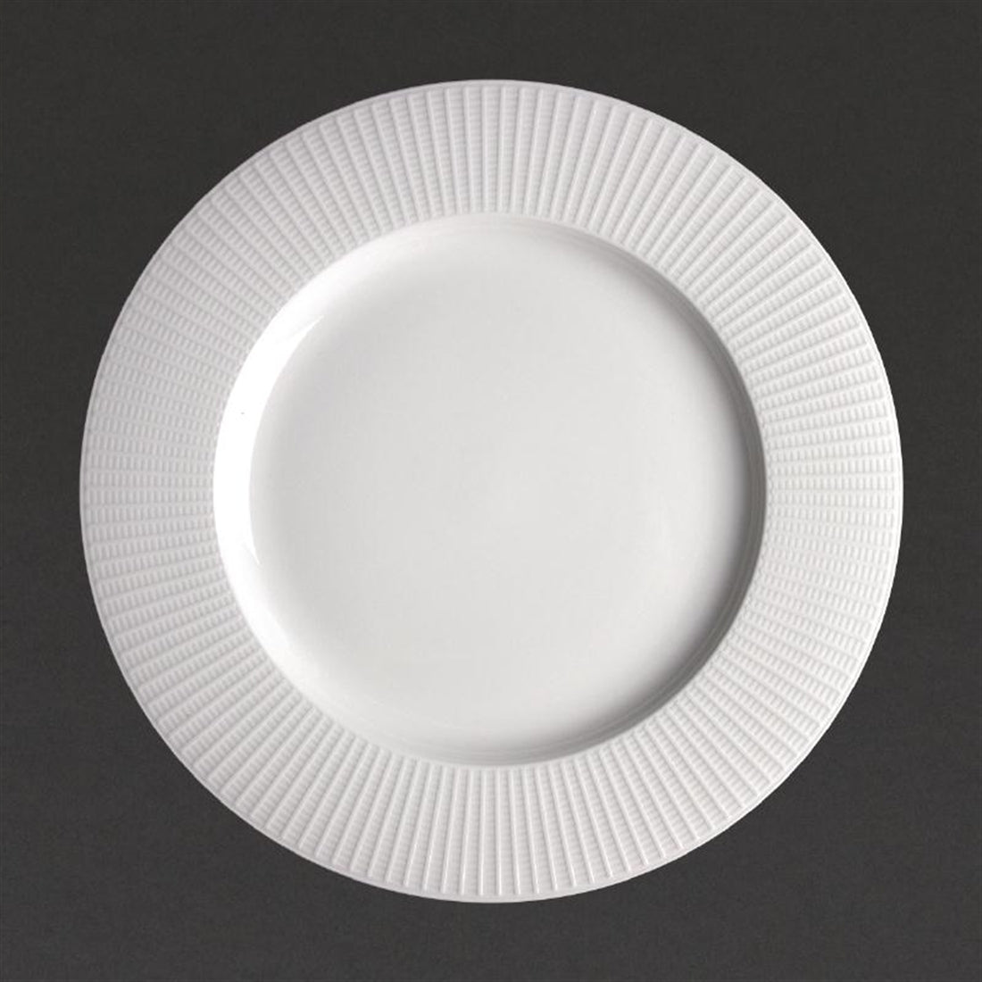 Serve generous main courses with style thanks to the subtle grid design of these dining plates' lips. Perfect for adding texture to any course without distracting from the food, the intricate woven detailing of the edge of these plates is made using traditional techniques for a contemporary yet intriguing finish. These plates are resistant to thermal shocks, stains and are designed to withstand extensive commercial usage. Dishwasher, freezer, oven and microwave safe, these stylish plates suit a range of hotel and restaurant settings.