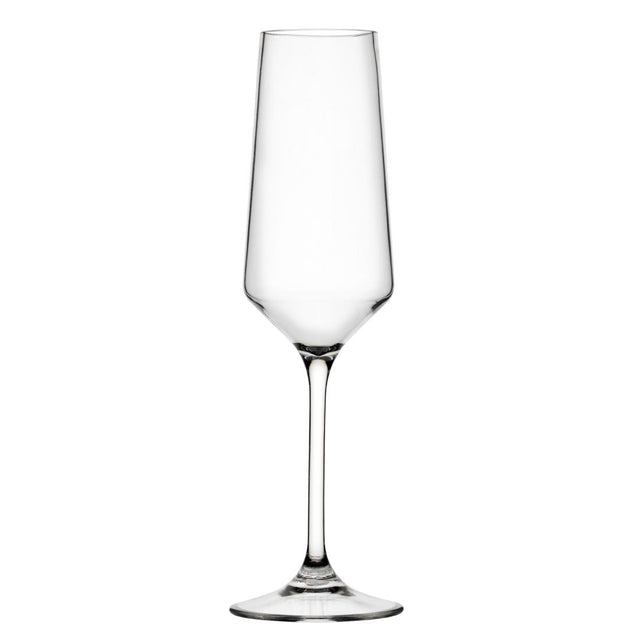 Utopia's Apex champagne flutes elevate drink presentations with their modern, angular design and sophisticated look. Crafted from high-quality, durable polycarbonate, they're versatile for any occasion, indoors or outdoors. Unlike glass, they are shatterproof, making them a safe choice for environments where breakage is a concern.