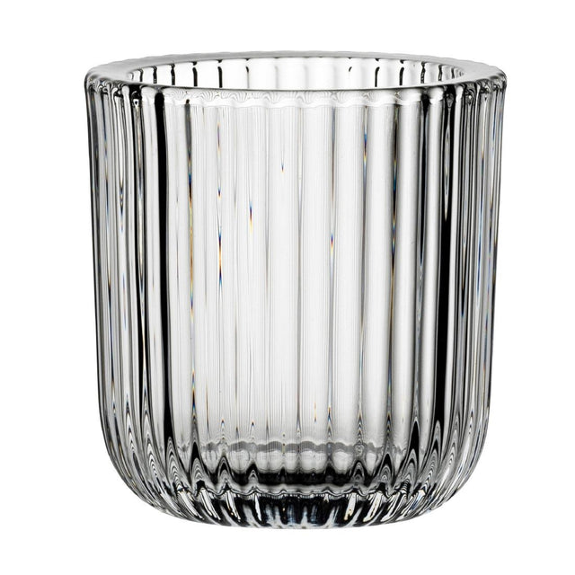 Enhance the mood of your restaurant or bar with these handmade soda-lime candleholders from Utopia's beloved Hayworth collection. With their eye-catching optic design, the candleholders cast a warm, inviting glow that complements any dining experience. Crafted with care and attention to detail, these elegant pieces add a touch of sophistication and charm to your establishment, making every meal feel special and memorable.