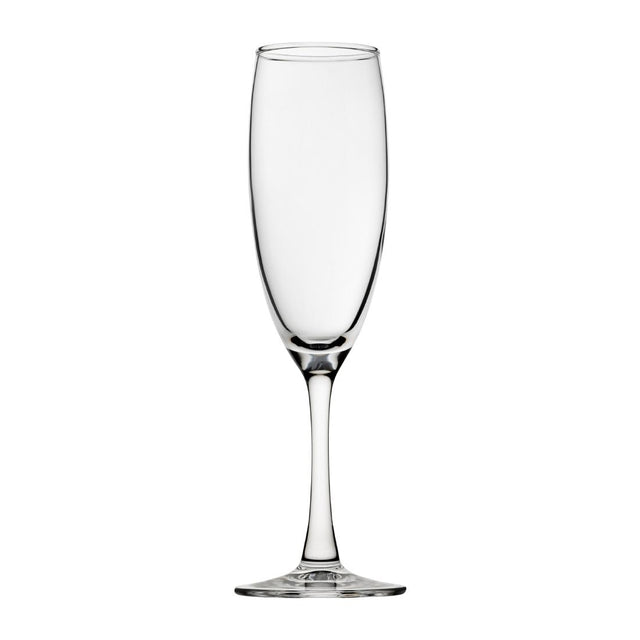 Looking for glassware that's as stylish as it is practical? Then the 185ml champagne flutes from Utopia's Vino collection are exactly what you need. Their rounded bowls provide an elegant and slender look, whilst helping to release the full flavour and aroma of your drinks. A wide base helps to prevent knocks and spills. Made from soda lime glass, each piece benefits from excellent clarity that helps to highlight the look of your favourite tipples.