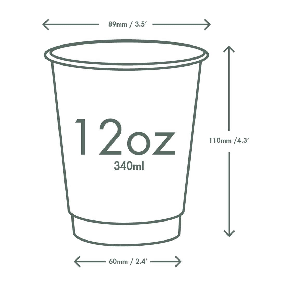 Complete your drinks to go service with these compostable 12oz hot cups in Vegware's revamped Green Tree design. Made from plant-based materials with a water-based lining, these cups are double walled and compatible with Vegware's 89-Series lids (sold separately). The 12oz capacity makes them perfect for holding hot drinks such as tea and coffee, as well as soup and hot chocolate. They are home or industrial compostable and recyclable in coffee cup recycling schemes - check your local options.