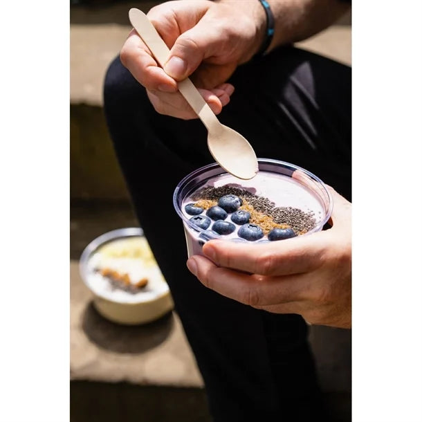 Made from plant-based polylactic acid (PLA), these round deli pots from Vegware deliver a smart solution for cold-food presentation. The clear container provides excellent visibility, allowing salads, desserts or snack pots to stand out on display. With a generous 340ml (12oz) capacity, each pot is ideal for small portions of deli treats, cold snacks or yoghurt-based desserts.