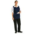 This navy blue tabard (S) with pocket has been constructed using a durable polycotton material which is easy to care for. With features including a large front pocket and adjustable popper side fastenings, this tabard is the perfect workwear to protect your staff uniform.