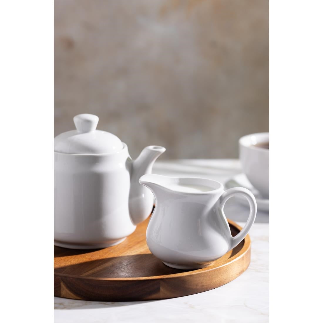 Olympia Athena's products, such as their 170ml porcelain milk jugs have been designed for professional use at banquets and events, and in the hotel and catering industries due to their hard-wearing and functional attributes, ideal for use in pubs, canteens and bistros.