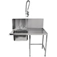 1100mm high pass-through inlet table with sink bowl, splashback, pre-rinse spray and mixer taps.