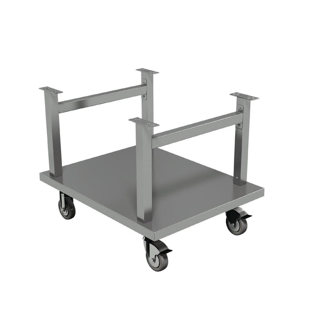 Stainless steel open stand with shelf for mounting any Dominator Plus 600mm wide countertop model on. Is supplied with castors and is shipped flatpacked so needs to be assembled on-site.