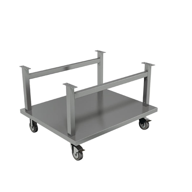 Stainless steel open stand with shelf for mounting any Dominator Plus 800mm wide countertop model on. Is supplied with castors and is shipped flatpacked so needs to be assembled on-site.