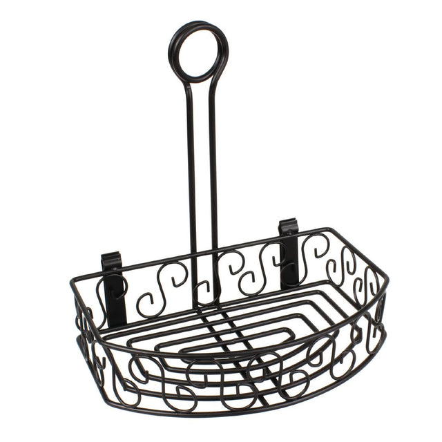 With the variety of condiments you offer on your tables, it's important to have a holder to keep them together. Constructed from steel, this basket is strong for everyday use. It is also strong enough to carry once your condiments and sauces are in place. The cut out wire design all over adds an elegant and upmarket look to any styled decor. Clips on the back allow menus to be kept securely and neatly in place when not in use.