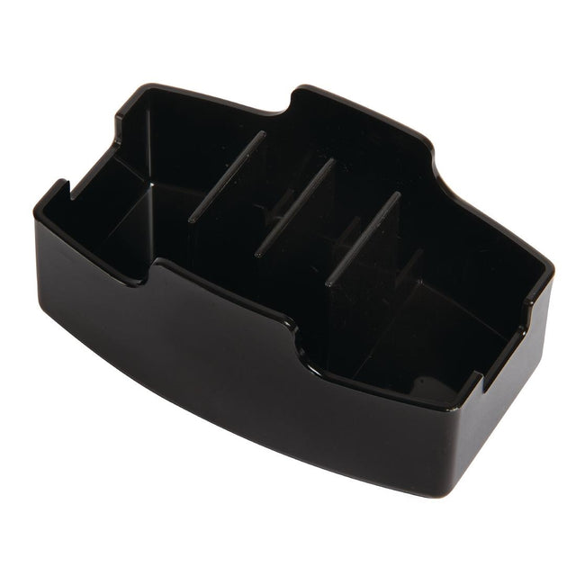 This Sachet Holder in Black offers a simple and effective way to keep tea, sugar or drink stirrers neat and tidy. Made from an all-black durable polycarbonate plastic, the holder is both easy-to-clean and durable - saving you time and replacement costs. Rubberised feet ensure that the holder stays in place and stops slippage. Able to hold multiple sachets at a time, this is the perfect addition to any café, bar or hotel service.