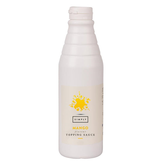 Make your drinks and desserts tropical with Simply's mango topping sauce. Packaged in a large 1kg squeezy bottle, this deliciously sweet, exotic fruity flavour is great with meringue-based desserts, white chocolate frappes, cheesecakes and so much more. Simply mango topping sauce is nut-free, gluten-free, suitable for halal, and carries the Vegetarian Society Vegan certification.
